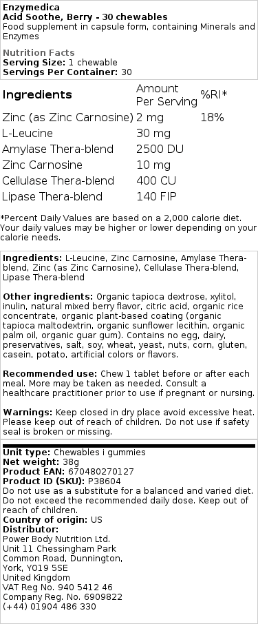 Enzymedica – Acid Soothe, Berry