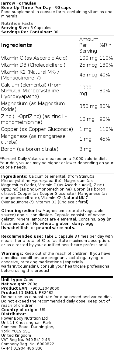 Objevte výhody produktu Bone-Up Třikrát denně, pokročilého doplňku stravy navrženého pro podporu pevnosti kostí a celkové pohody. Tento produkt obsahuje StimuCal ossein mikrokrystalickou hydroxyapatit (MCHA) z volně chovaných novozélandských telat, unikátní složku bohatou na přirozený typ I kolagen. Tato formule je vytvořena tak, aby podporovala zdravou kostní strukturu bez nepřiměřeného zvyšování hladiny vápníku v krvi.