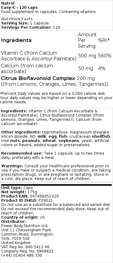 Natrol Easy-C indeholder esterificeret C-vitamin, en unik formel der minimerer syreindholdet og gør det mere skånsomt mod maven. Denne form for C-vitamin er både vand- og fedtopløselig, hvilket sikrer hurtig optagelse og effektiv fastholdelse i kroppen.