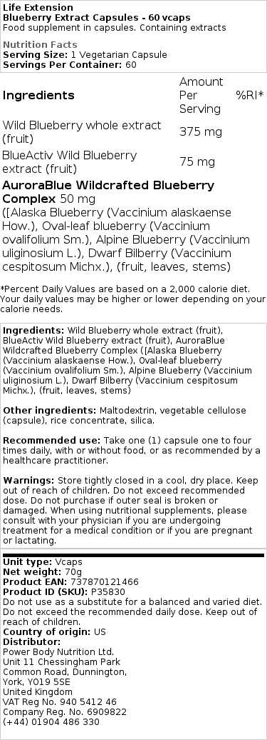 Life Extension – Blåbær Ekstrakt Kapsler