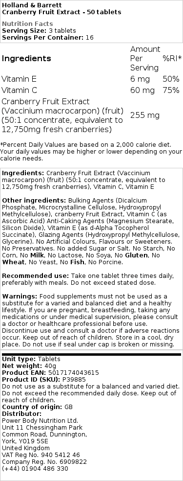 Naše tablety s brusinkami nabízejí praktické řešení pro ty, kteřím se čerstvé brusinky zdají příliš kyselé. S produkty Holland & Barrett získáte všechny dobré vlastnosti brusinek bez nepotřebných cukernatých sacharidů, což je ideálním řešením pro zdravější životní styl.
