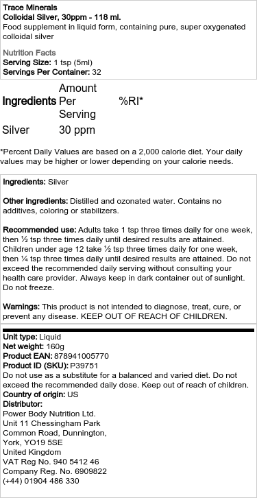 Popis produktu: Koloidní stříbro, 30ppm – 118 ml
