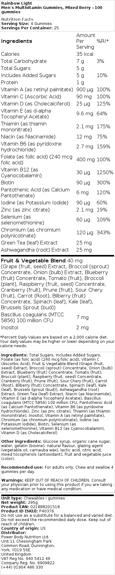 Rainbow Light – Multivitaminové gumy pro muže