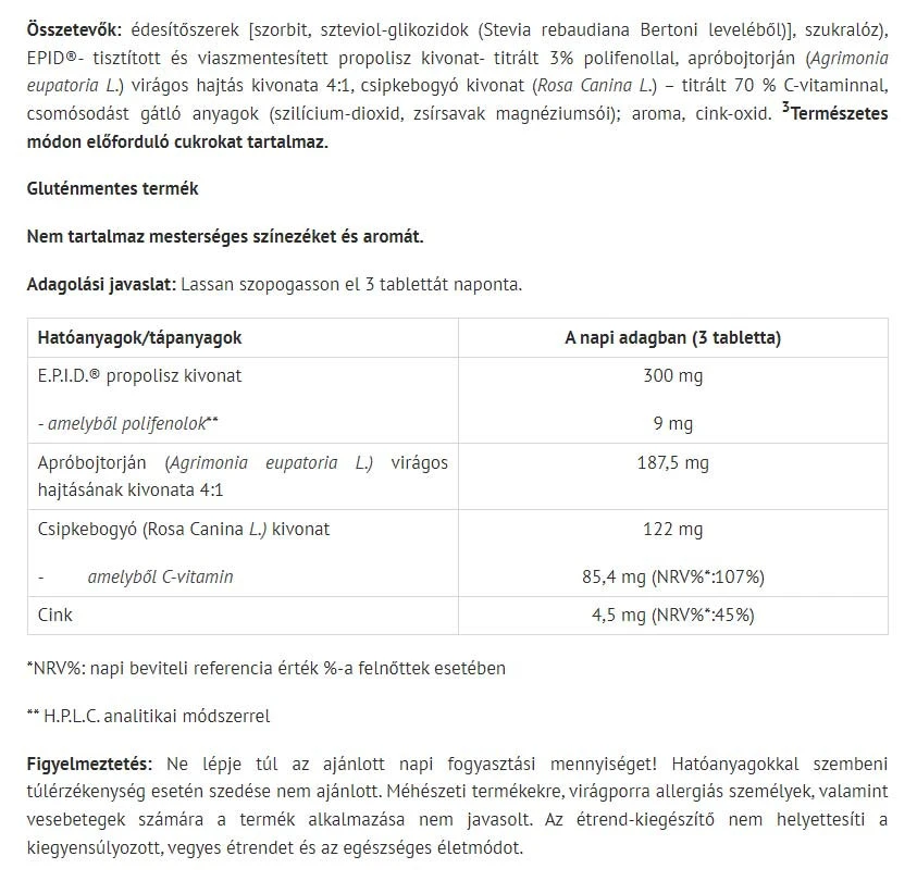 hlavní složky: Každá tableta obsahuje vybrané extrakty z alpských bylin společně s propolisem, zinkem a vitamínem C pro každodenní použití.