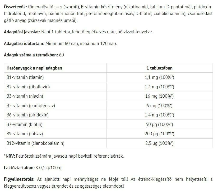 Hlavní složky: Komplex vitamínů skupiny B, které jsou známé svým původem z rostlinných zdrojů. Tyto vitaminy jsou pečlivě vybrány tak, aby odpovídaly potřebám těch, kdo hledají veganské produkty.