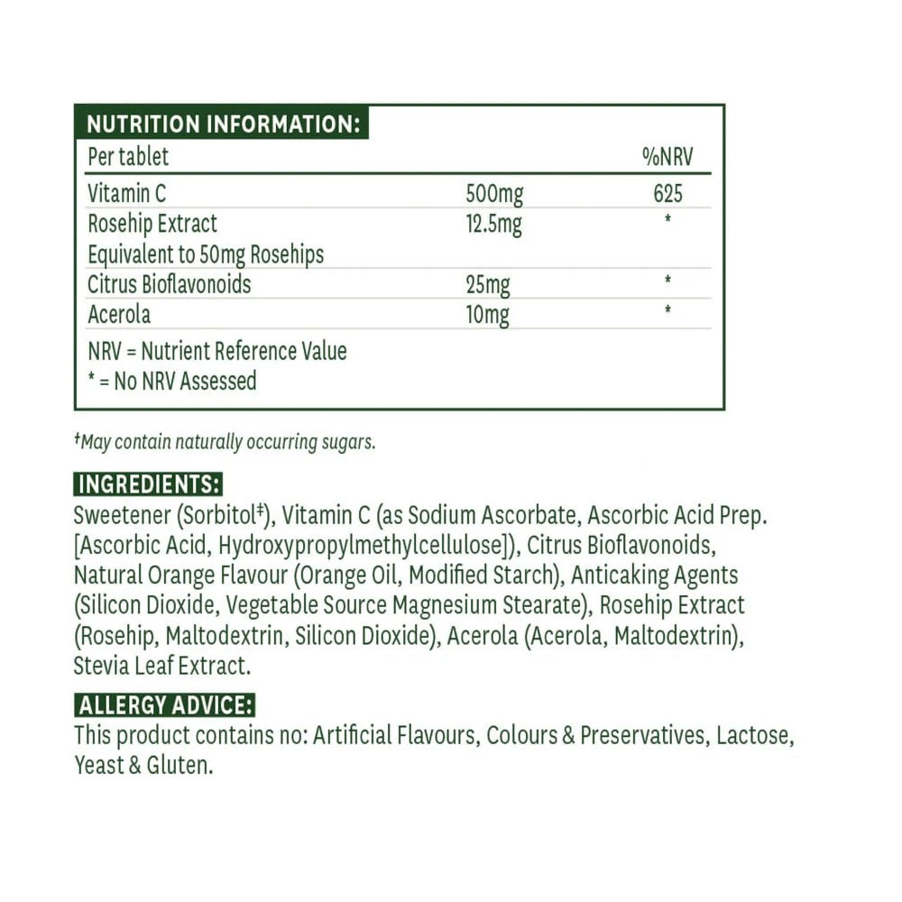 Natures Aid Vitamin C 500mg Chewable – Orange Flavor (100 Tablets)