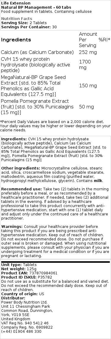 Optimal BP Management er unikt sammensat med følgende ingredienser: