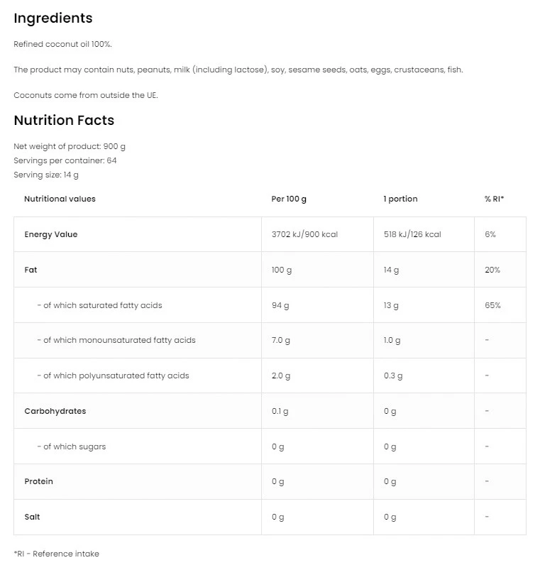 hlavní složky: 100% kokosový olej