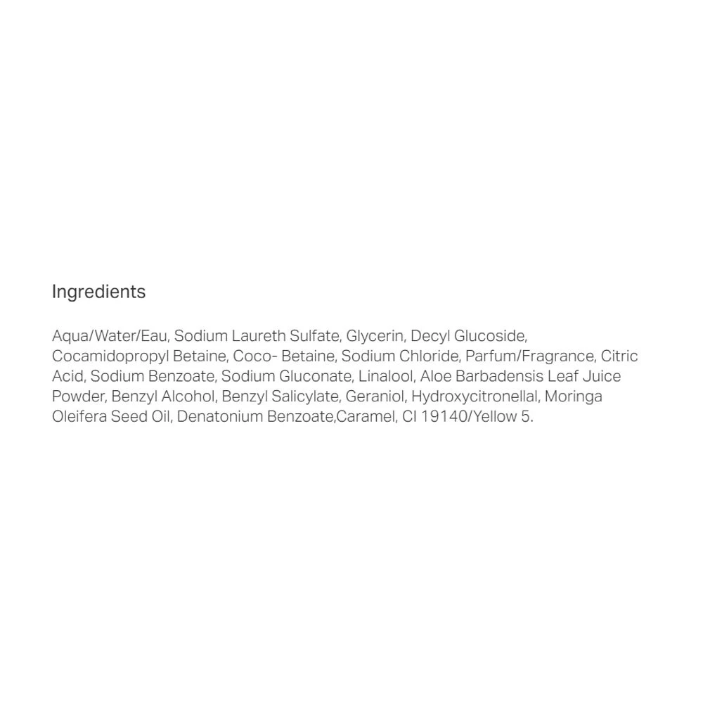 Hlavní složky: Tento produkt je obohacen o extrakty moringy,známé svým přirozeným původem a jemnou vůní. Doplňuje jej praktické balení o objemu 750 ml, které zajistí dlouhotrvající použití.