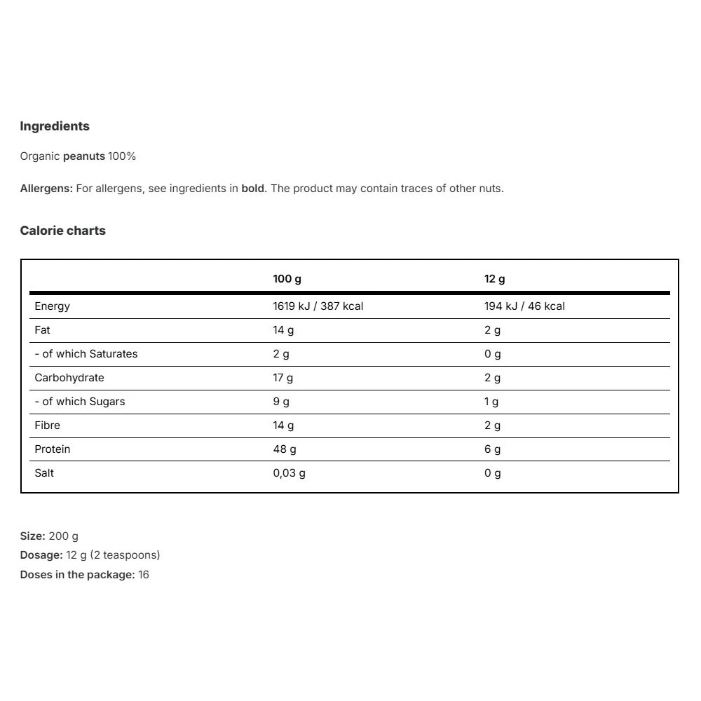 Balení obsahuje 200 gramů tohoto lahodného prášku, který je prakticky balen pro snadné použití. Můžete ho smíchat s vodou a vytvořit tradiční arašídové máslo nebo ho použít jako zdravý topping na vaše oblíbené pokrmy.