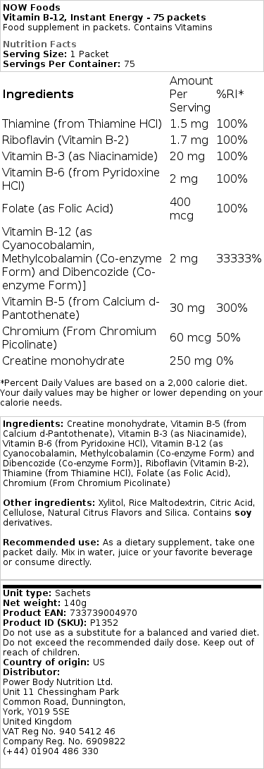 Skvělý způsob, jak okamžitě získat energii, která není založena na kofeinu. Vitamin B12 je něco, co nám dodává energii, a to je skvělý způsob, jak pomoci zvýšit denní energii bez kofeinu. Jsou vhodné pro vegany a vegetariány, což je důležité, protože vitamín B12 je obvykle získáván z masa a mléčných výrobků, takže vegani jsou opravdu náchylní k tomu, že tuto energii z vitamínů přijdou. Tyto sáčky jsou skvělé, jen si ráno přidám jeden sáček do sklenice pomerančového džusu a funguje to, když se vyhýbám kofeinu 🙂