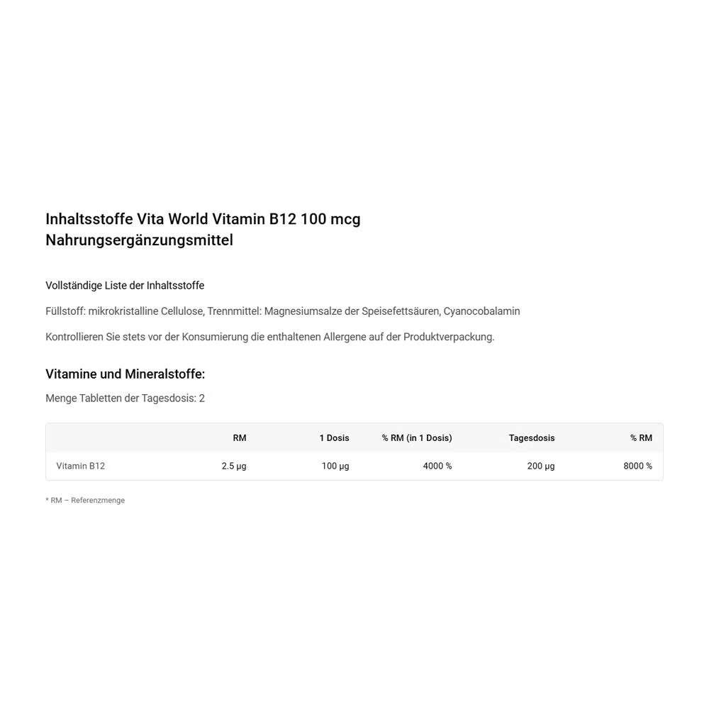 Vitaworld – Vitaworld Vitamin B12 100 mcg (180 kapslí)